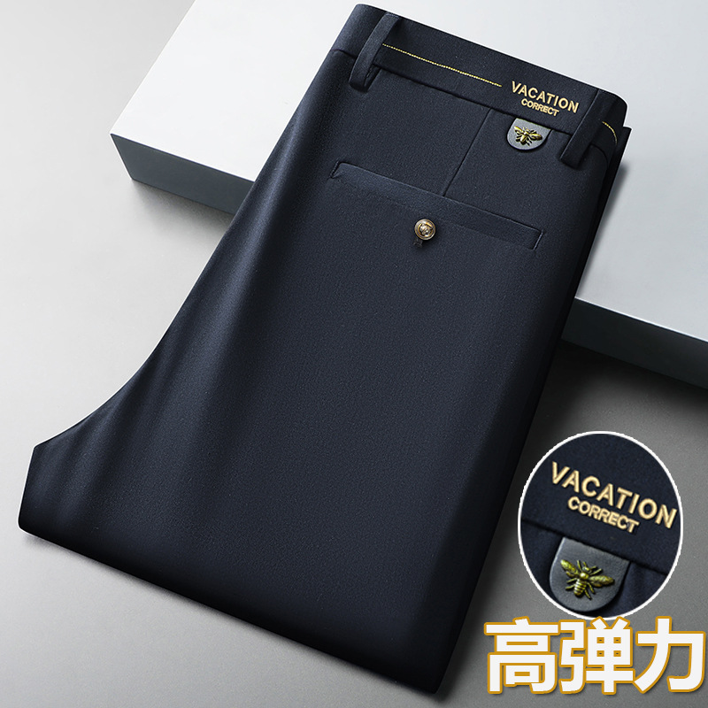 2023夏の新型男性ストレート薄いタイプのアイロンなしスーツズボン男性式ビジネスカジュアル男性ズボン氷糸弾力