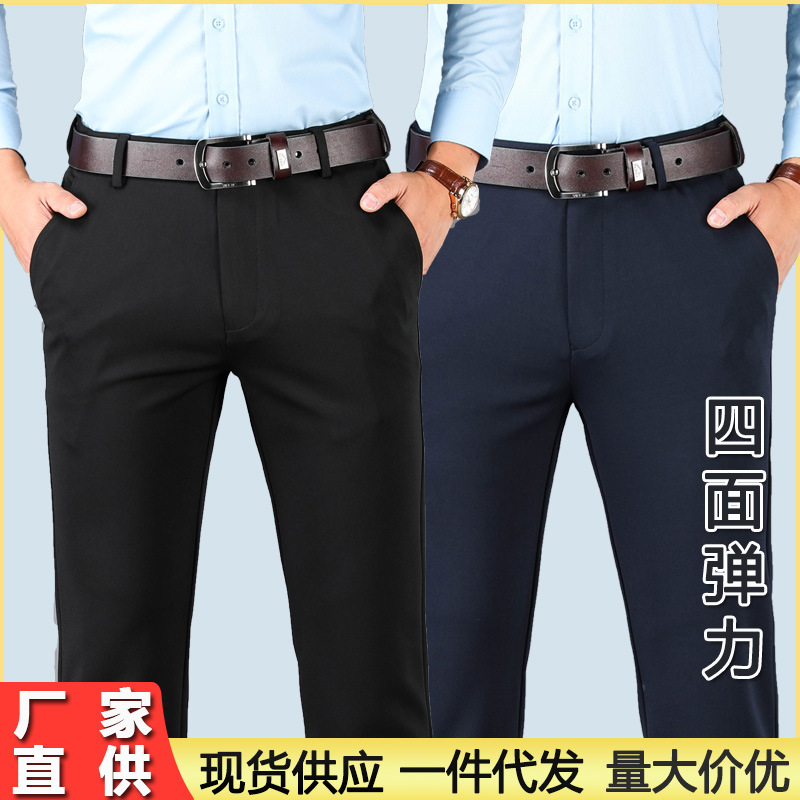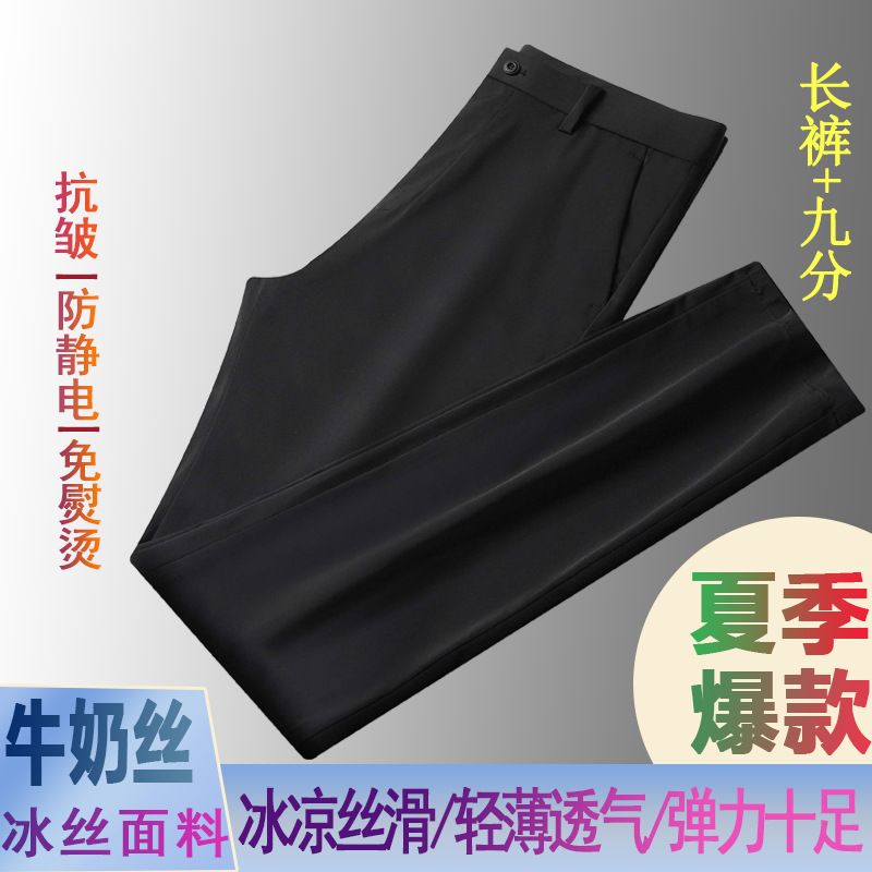 夏の薄手【ミルク糸】高弾力カジュアルパンツ男性アイスパンツ中年ストレートビジネス西ズボン