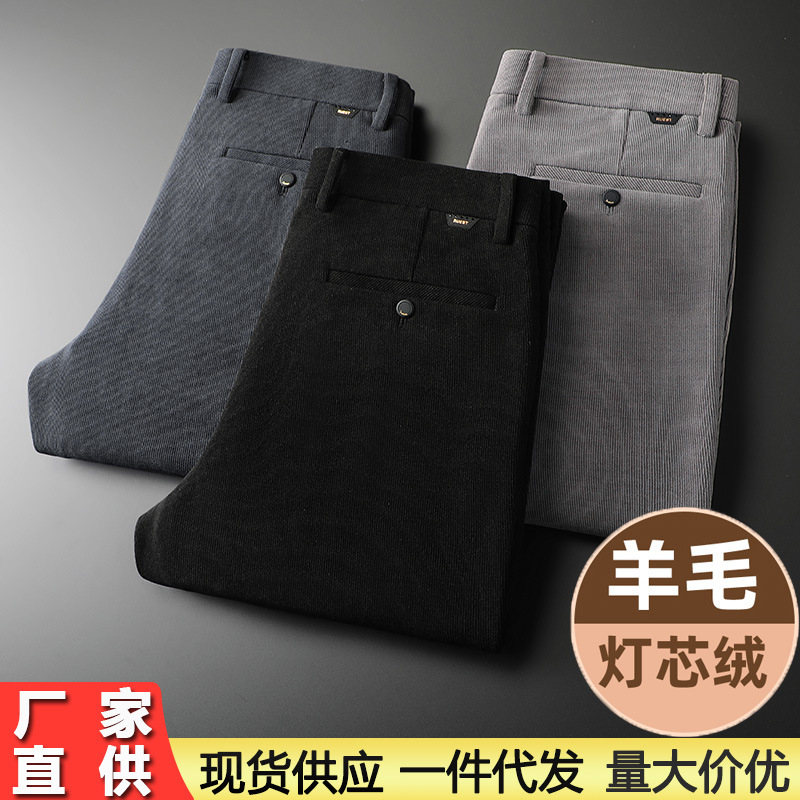 男のズボンの秋の厚手の綿のウールの男性のカジュアルなズボンの中年のまっすぐな筒の熱いビジネスのズボンの男性のベルベットのズボン