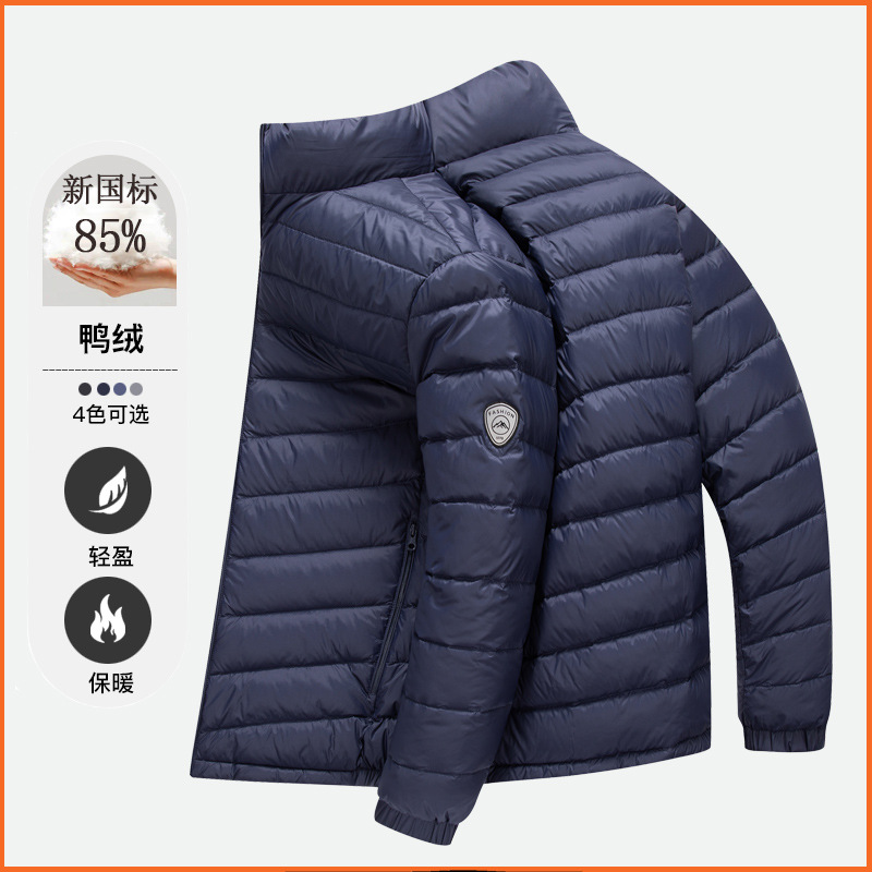 秋の冬の白鴨の羽毛のダウンジャケットの男性の薄い羽毛のスタンドカラーの軽いショートタイプの保温の男性の上着の上で服を着ます。