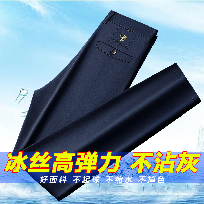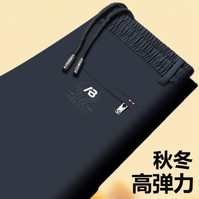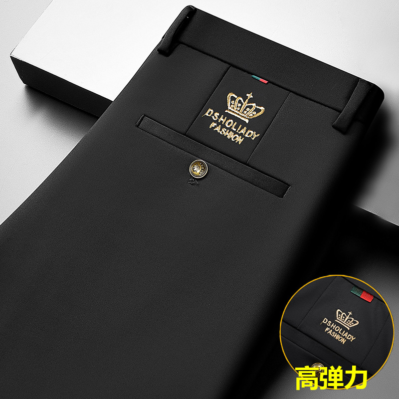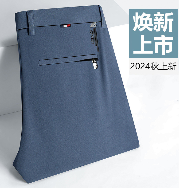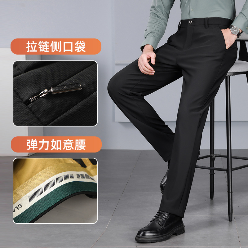 錦アンモニア牛乳糸高弾力男ズボン直筒ビジネススーツズボン春秋厚タイプ男性カジュアルズボンサイドバッグファスナー