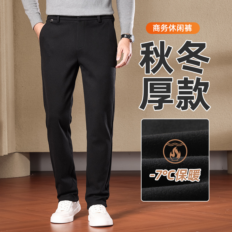 新型四面弾力秋冬厚モデル男性カジュアルパンツ平腰ファスナーストレートビジネスズボン男性弾力男性ズボン