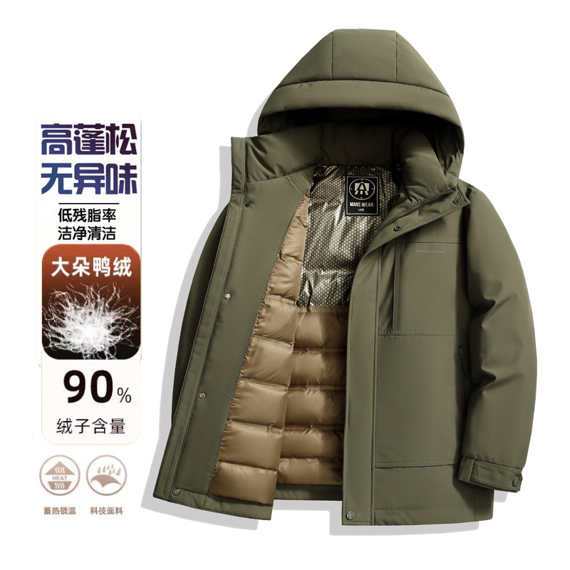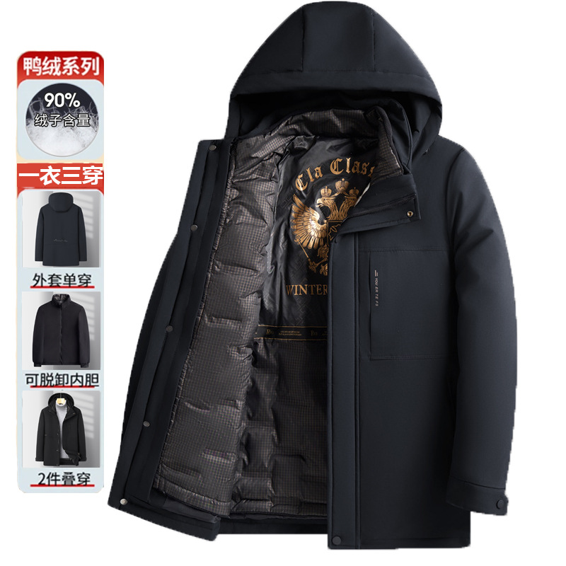 一衣三着90白鴨絨毛内胆は冬に厚く保温する中高年フード付きパパ男性コートを取り外しできる