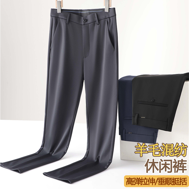 秋のビジネスズボン綿羊毛混紡高級カジュアルパンツ男性直筒厚金弾力感ファッション男性ズボン