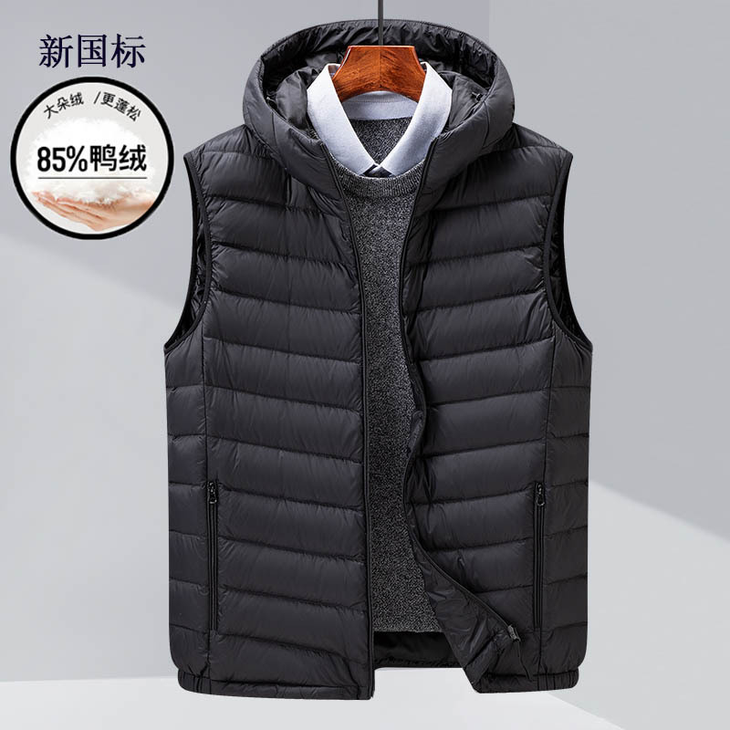 帽子付き馬甲ダウンジャケット冬90白鴨パイルの短い男性カジュアルダウンベストの薄い保温コート