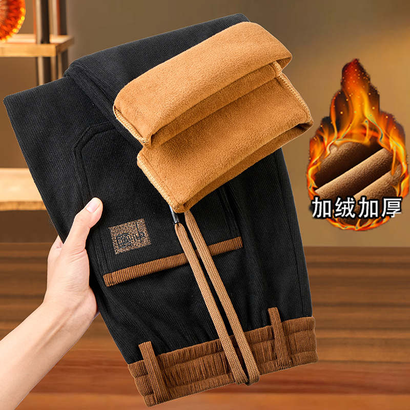 コーデュロイ男性カジュアルパンツ秋冬厚モデルウエストストレートゆるいベルベット厚い暖かいベルベットパンツ