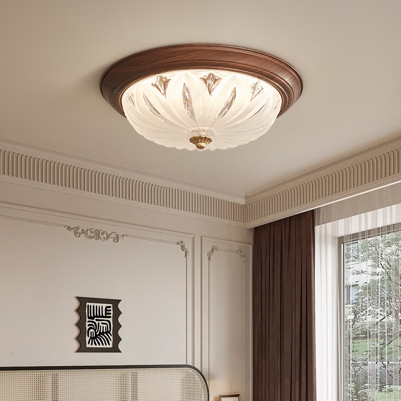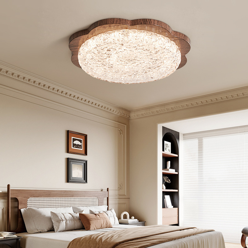 寝室の天井灯の中古の驚きの風の原木の花の王女の部屋の明かりの2025年の新型の胡桃の木の主な寝室の明かり