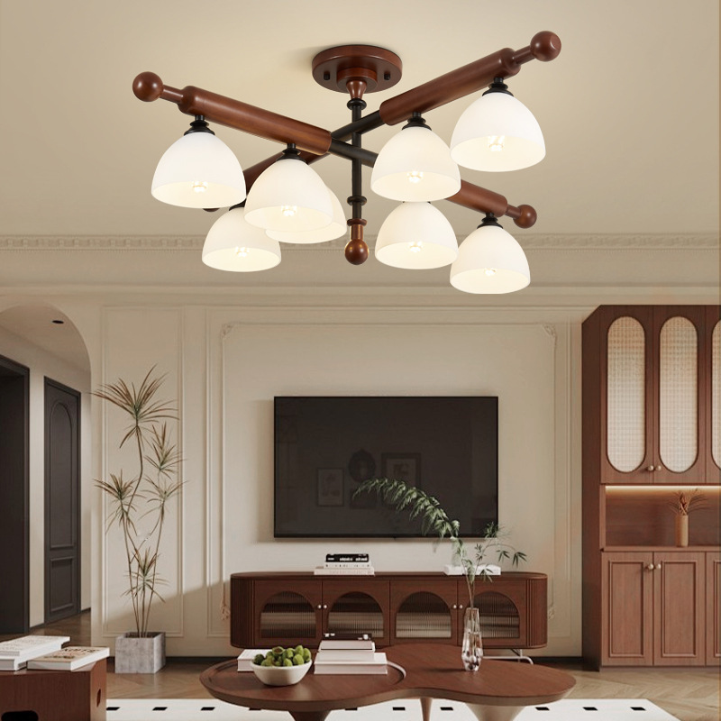 リビングルームの天井灯アメリカのレトロな胡桃色のホールのメインランプ2025年の新型の中古風の寝室の部屋の照明