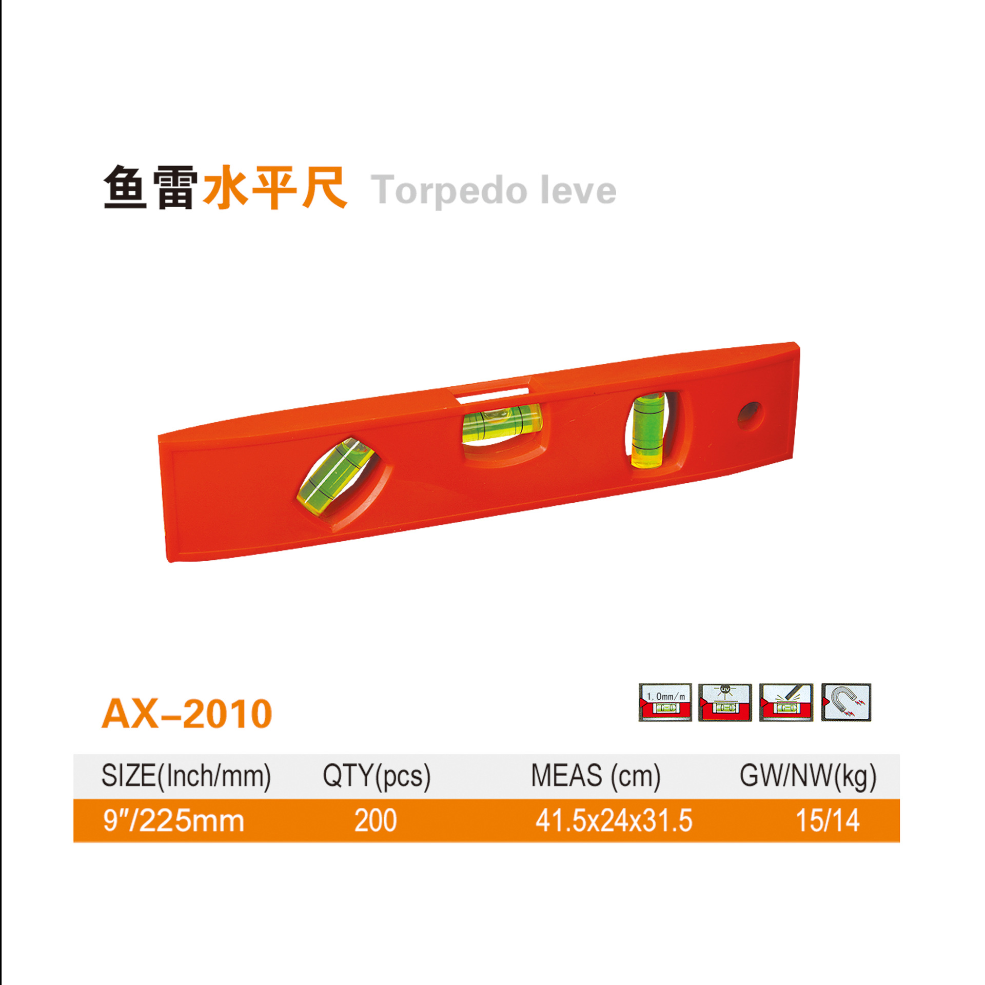 9inch オールプラスチック製ミニ魚雷型レベル定規、高精度小型強力磁気バランス定規、ポータブルレベル定規