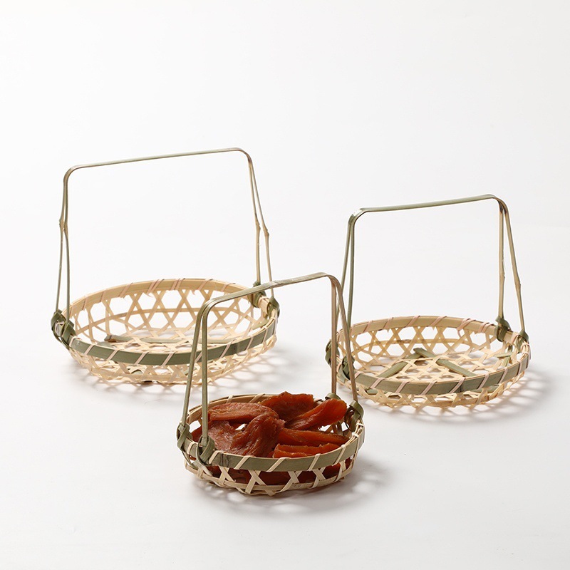 手作りの竹バスケット、クリエイティブな家庭用収納バスケット、フルーツバスケット、ホテルの多層の小さな竹バスケット、丸い小さなバスケット