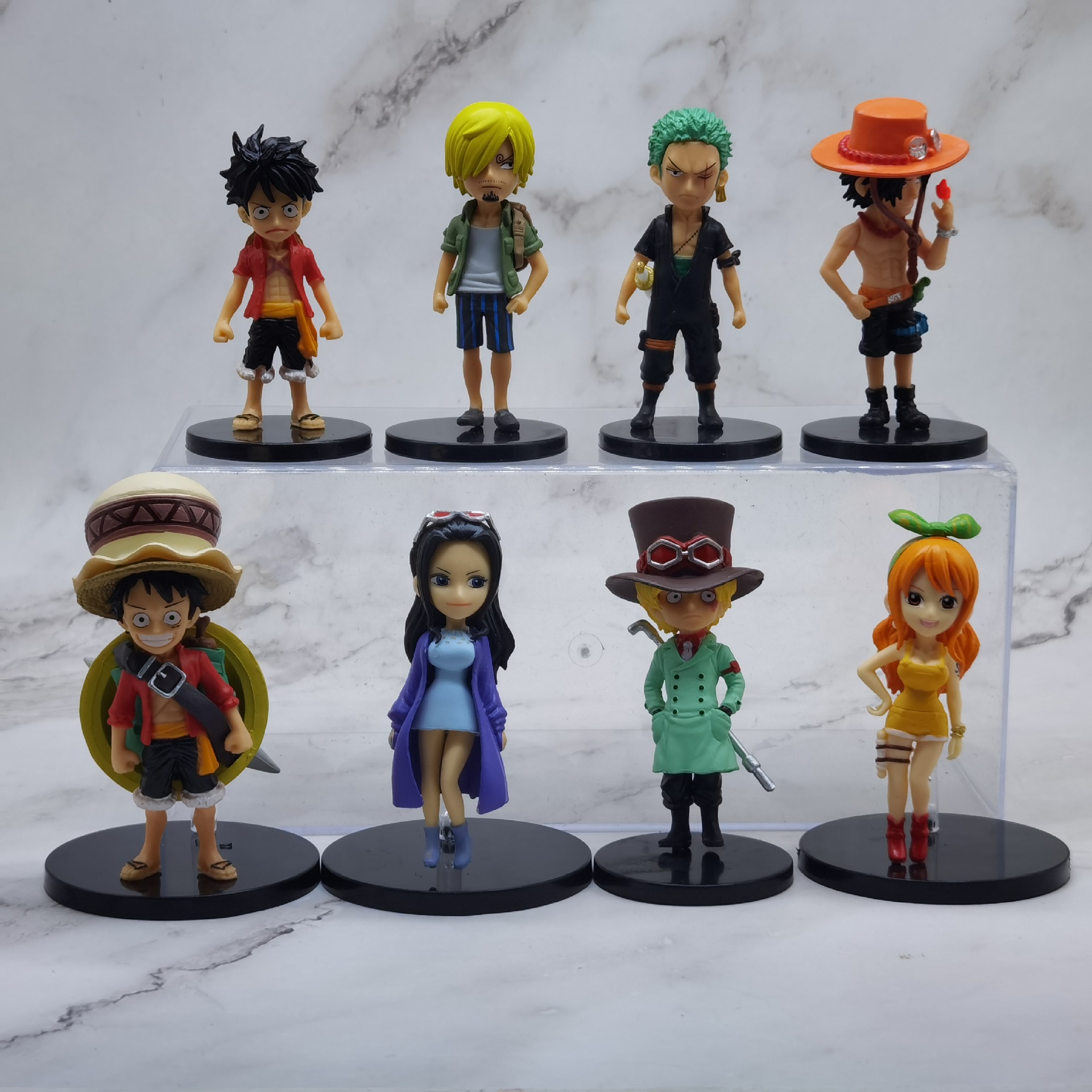 8種類のワンピースの置物の手作りの情景の装飾の置物のq版