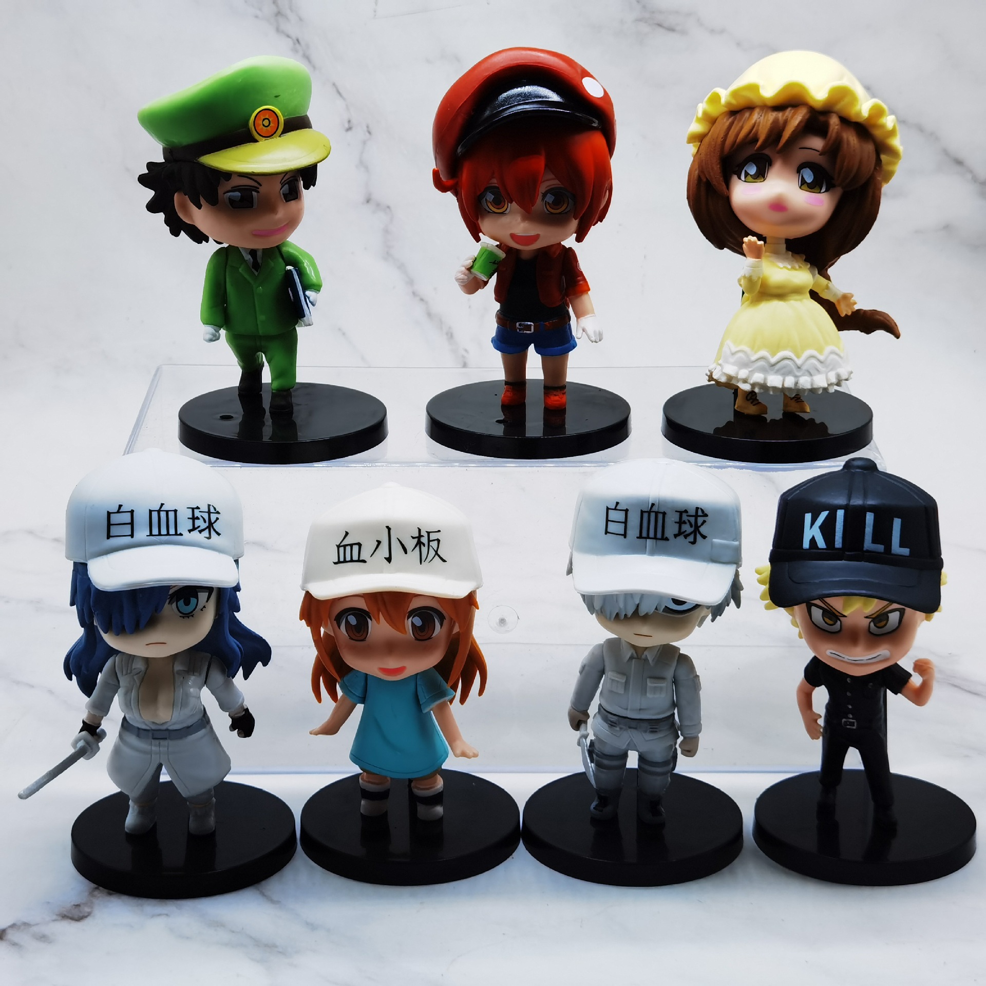 7種類のq版の仕事の細胞の手は人形を掛けます。