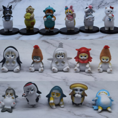 5種類の6種類のサメ猫サンリオ猫の置物人形のキーホルダー