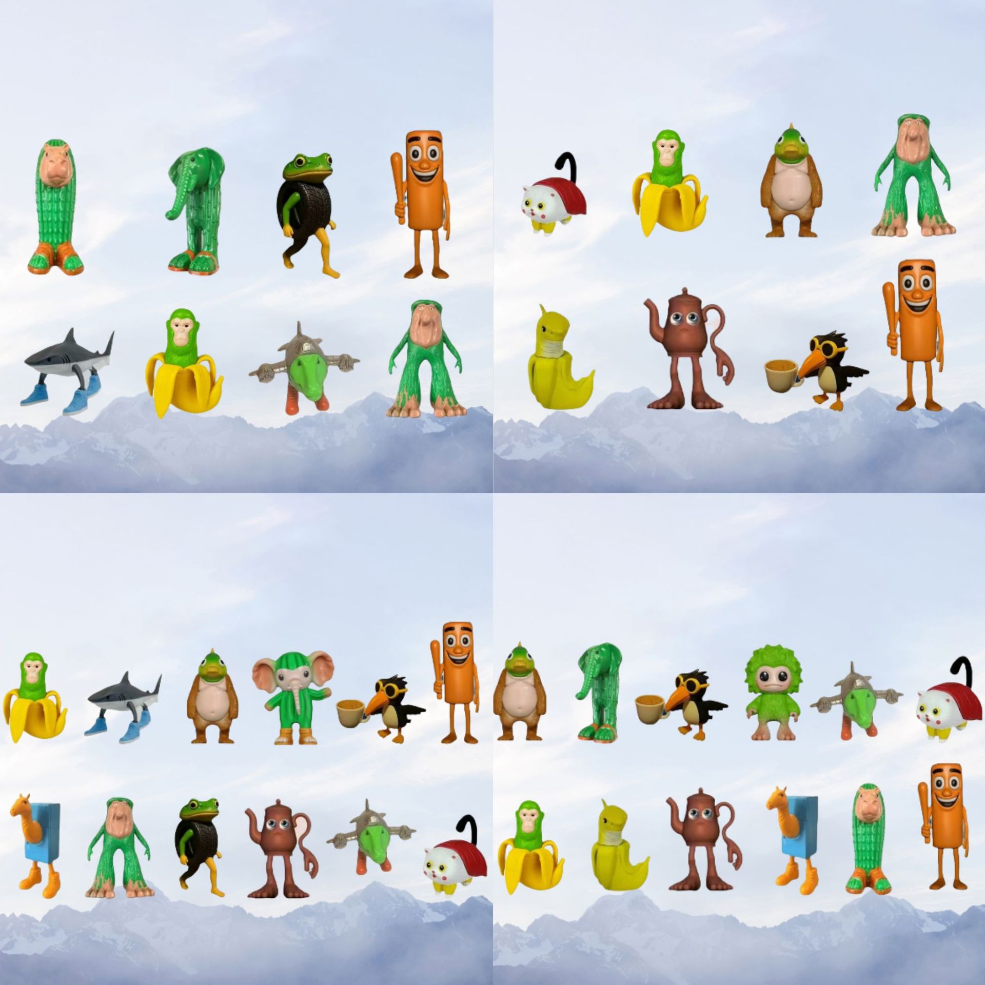 国境を越えた8種類の山と海の経典クリエイティブパロディーフィギュアモデルサメ木の棒人形人形装飾品人形OPPバッグ