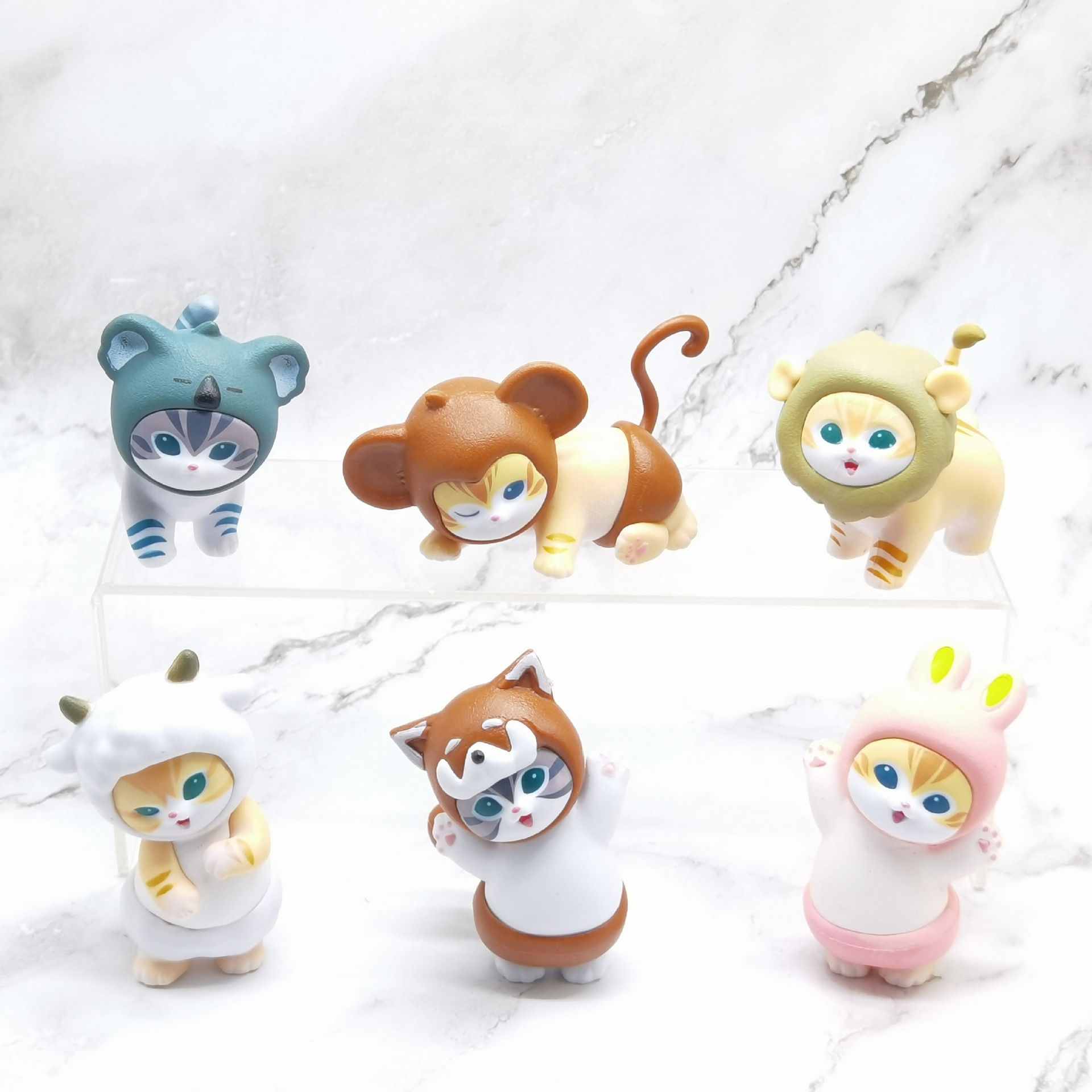 Fushan Cat Party Figure 6種類、かわいい猫ガシャポン、子供用クレーンゲームモデルオーナメント