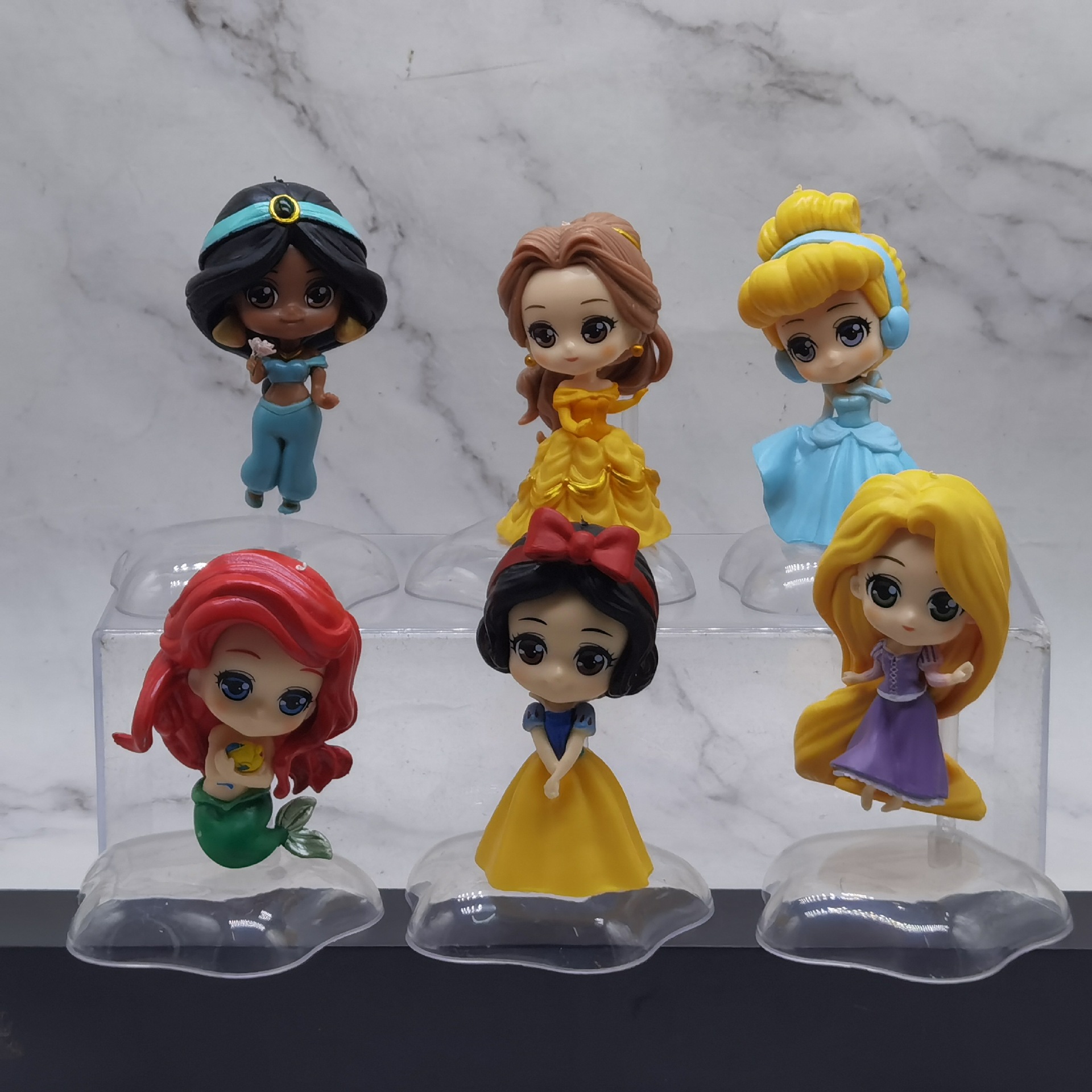 7世代の6種類のお姫様の置物のおもちゃの透明な台の模型の手は卵を捻って機の子供機の鍵を捻って飾ります。