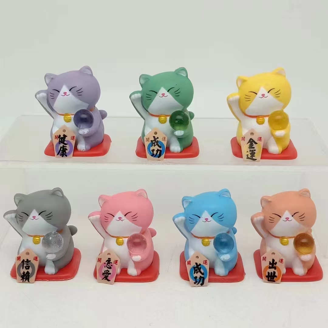 7種類の招き猫q版模型公仔玩具ガチャ人形車載ケーキ装飾置物1世代2世代