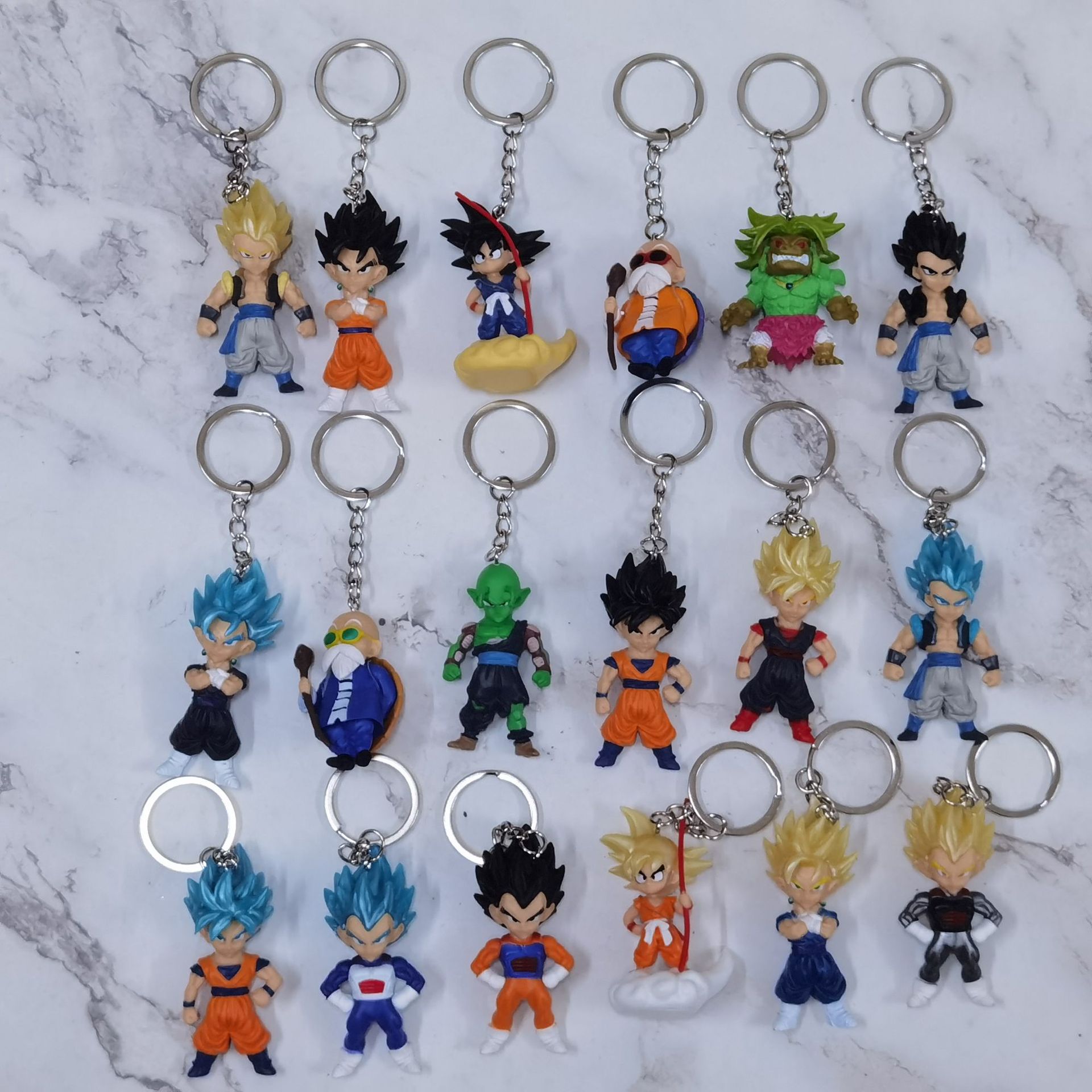 Q版18種類のドラゴンボールのキーホルダーは台座のぬいぐるみを持っています。