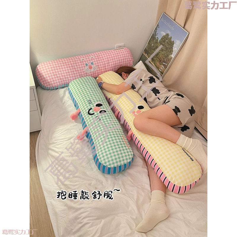 長い抱き枕の女の子が寝て七夕を抱いて彼女にプレゼントします。