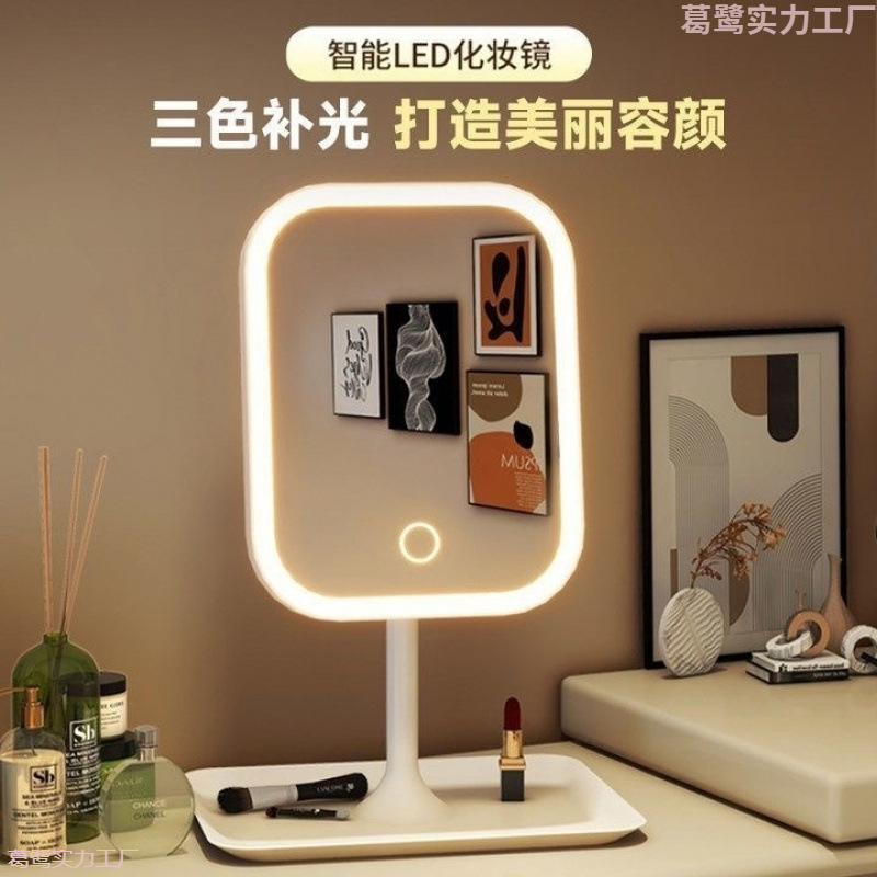 女の子用ライト付き化粧鏡、ポータブル化粧鏡、学生寮のデスクトップ補助光小型ミラー、シンプルなスタイル、家庭用