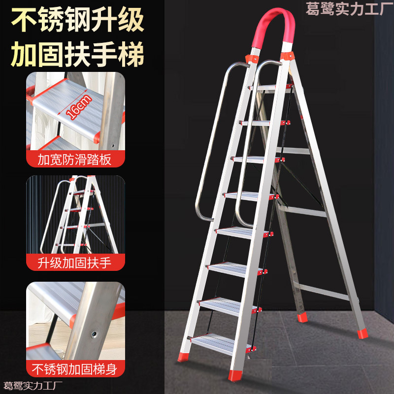 はしご家庭用アルミ合金ヘリンボーンはしご折りたたみはしご厚みのある屋内多機能伸縮式8段9段ポータブル階段