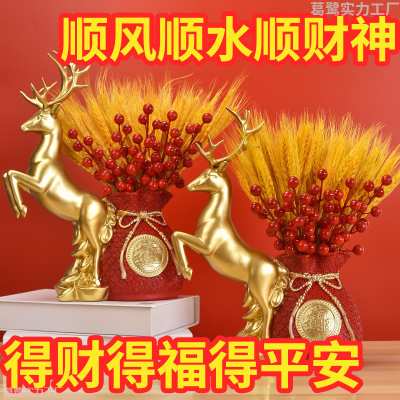中国の福袋鹿天然金小麦穂飾り大麦富と幸運の花瓶飾り新築祝い新居開店装飾