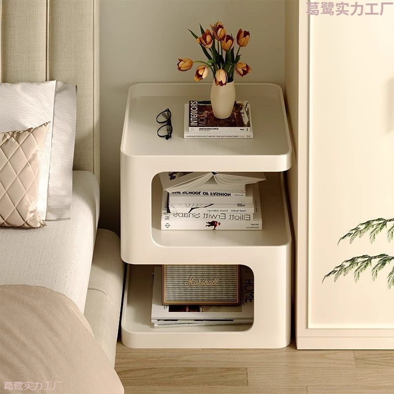 クリーム風のベッドの上の小さい辺のいくつかの創意的な寝室の鉄芸の小さいお茶のいくつかの物置の棚は簡単で現代的なベッドのサイドのキャビネットの小さいテーブルです。