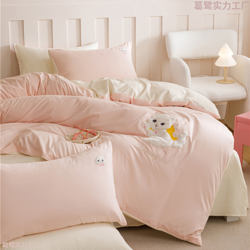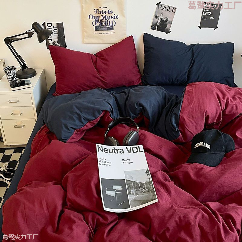 ダブルフィット超ソフトモチモチ布団カバー純色シーツ4点セットベッド笠学生寮カバー3点セット四季