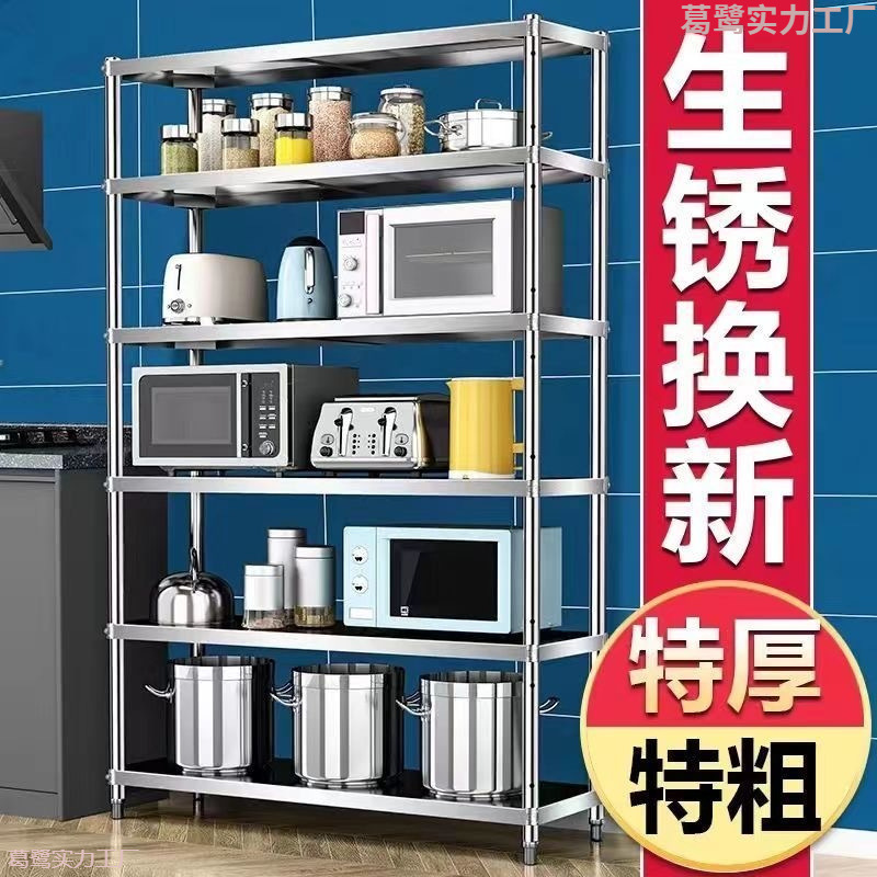ステンレス台所物置棚収納棚床置き多層物置棚電子レンジオーブン棚四階五階棚