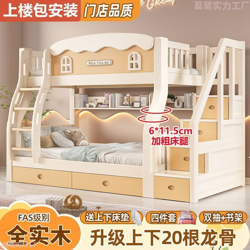 全実木上下ベッド家庭用成人ベッド二階高低太字ベッド児童プリンセスベッド小戸型