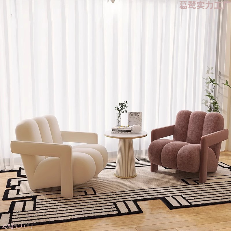 Ins風カフェカジュアルシングルソファーベランダ小茶卓怠け者客間クリーム風民宿部屋テーブル椅子