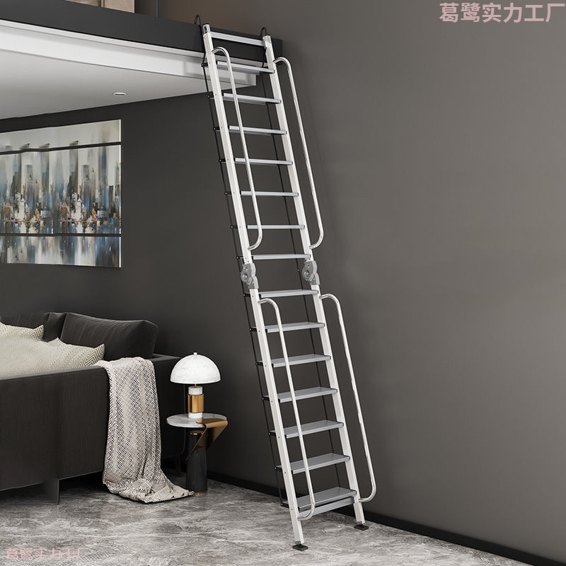 屋根裏二階プラットフォームはしごはアルミ合金携帯型折り畳み階段室内外移動十歩用を厚くした