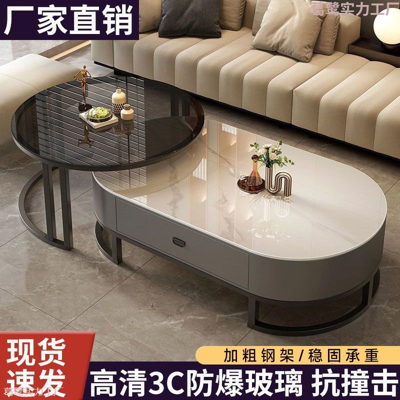 北欧の新型強化ガラス楕円形茶卓家庭用客間ネット赤茶卓小戸型高級感茶卓