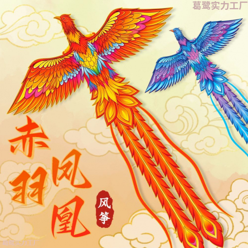 新商品の鳳凰凧国潮赤羽鳳凰子供凧の大きいサイズの長い尾のネットの赤い成人の凧のそよ風は飛びやすいです。