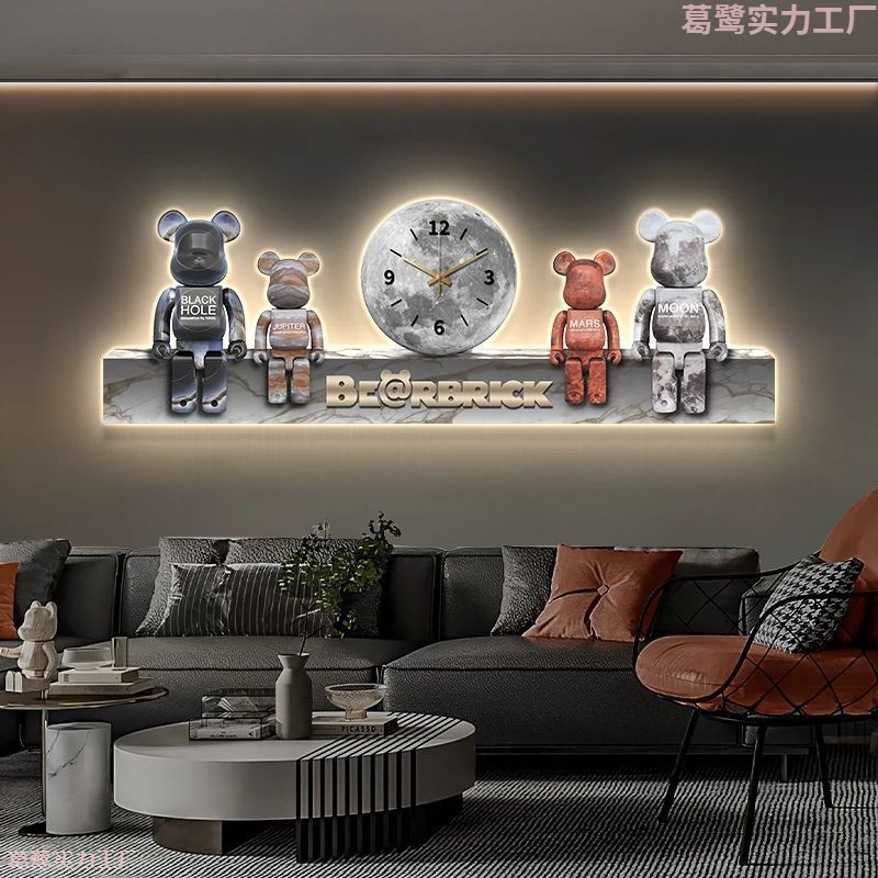 暴力的な熊の軽い豪華な客間の装飾は明かりのソファーの背景の壁を描いて寝室のベッドの時計の潮流の壁画を掛けます。
