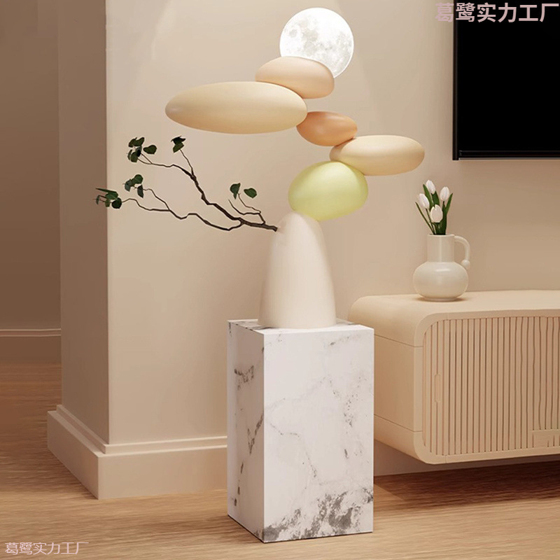 クリーム風テレビの棚のそばに床に落ちてランプを飾る時、リビングのソファーのそばの装飾品を運転します。