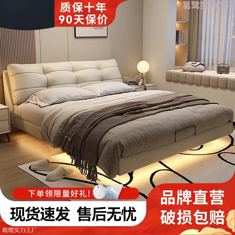 フランスクリーム風の本物の皮のベッドは軽くて豪華です。主寝室のダブルベッドは簡単です。