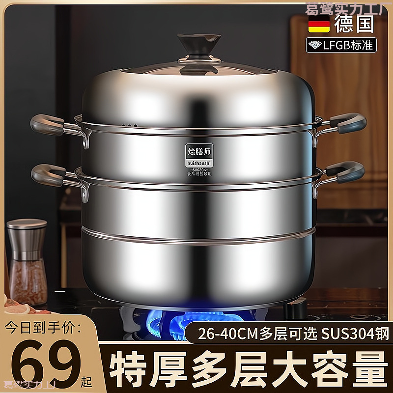 蒸し器大サイズ304ステンレス三層蒸し器二重家庭用多機能電磁炉ガス通用鍋具