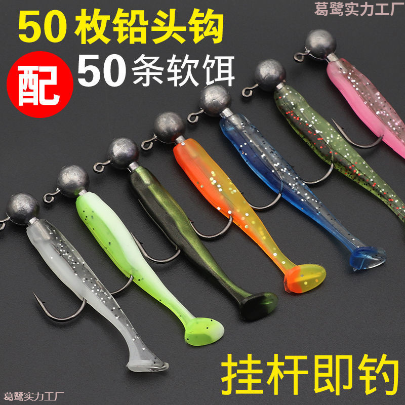 路亜餌セット尾軟餌遠投軟虫鉛頭フック尾魚偽餌単尾スズキイクラ首口巻き尾