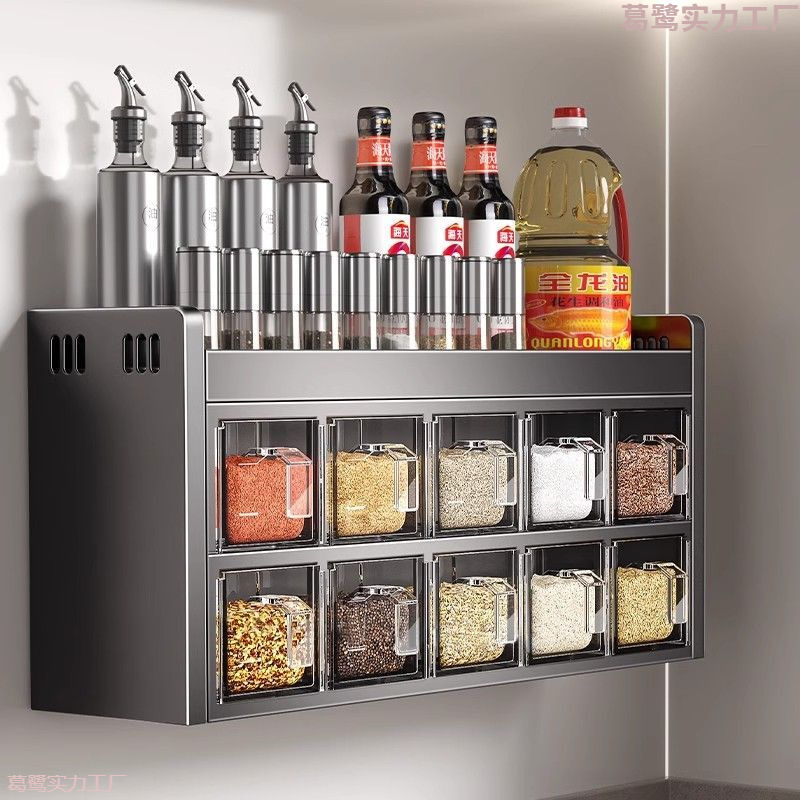 キッチン調味料棚多機能ステンレス壁掛け調味料箱缶セット高級家庭用