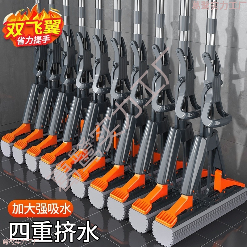 新しいスポンジモップ、家庭用ハンズフリー、増粘、浴室モップ、ワンモップ、怠惰な吸水性、太いロッド付き