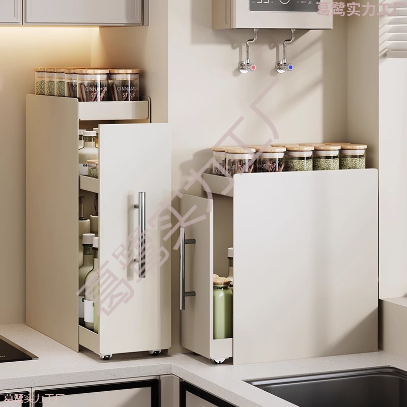 新型キッチンの狭い調味料棚のテーブルの引き出し式の多層防塵収納油塩と酢の調味料の棚