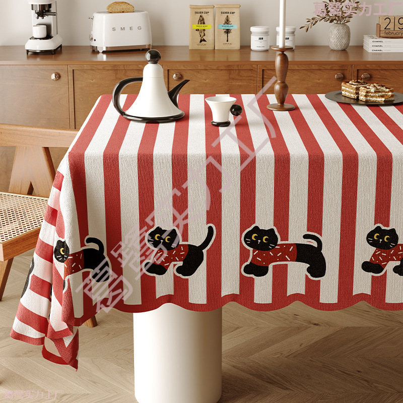 漫画テーブルクロスドーパミンライト高級テーブルクロス長方形コーヒーテーブルクロス火傷防止テーブルマットカンフー子猫北欧