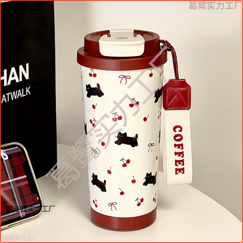 ポータブルウォーターカップ、高価値コーヒーカップ、魔法瓶カップ、316ストロー、ステンレス鋼ガールズ2024新しいストローカップ