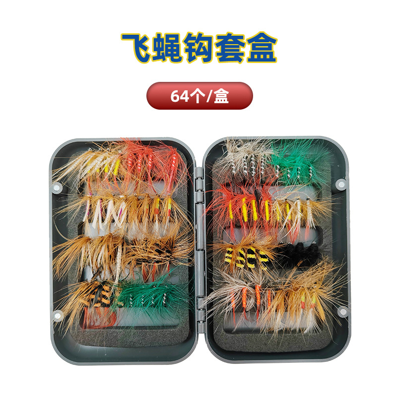64個入りフライフィッシングセット、模擬フライ、蚊虫餌、渓流釣り針、鯉、鯛、フライフィッシング用餌、偽餌