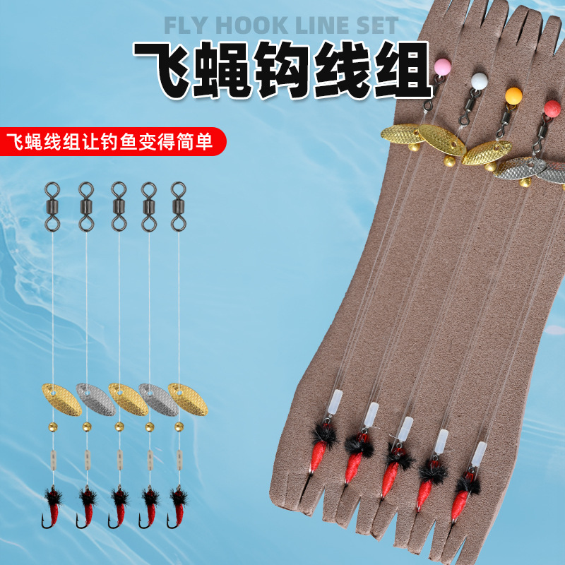 飛ハエフック釣りセット携帯ケース反射スパンコール模造翼飛ハエ餌白条青少し羅飛餌