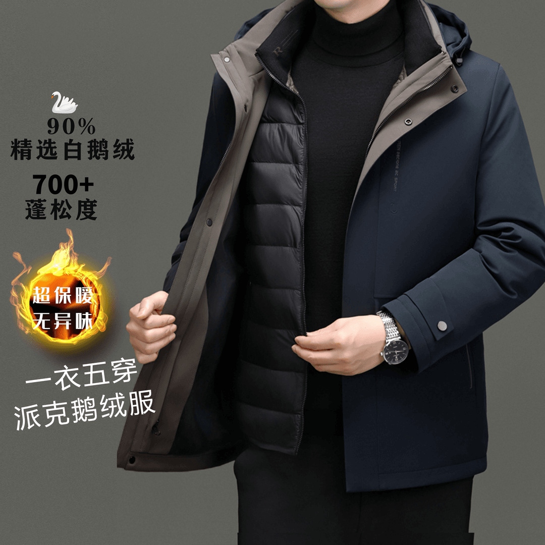 【取り外し可能なインナー】メンズダウンジャケット 冬の新作 中高年のお父さん向けコート フード付きグースダウンジャケット
