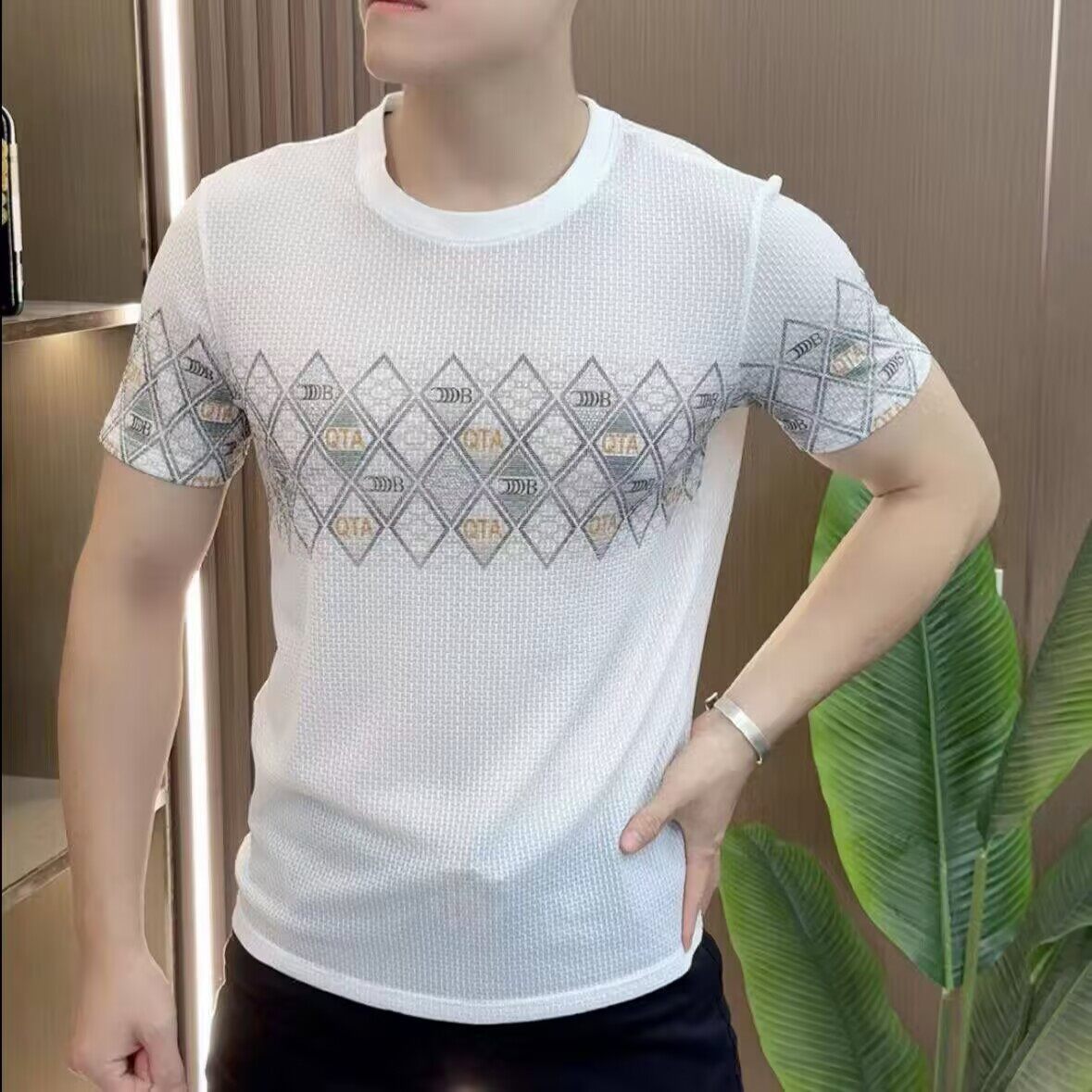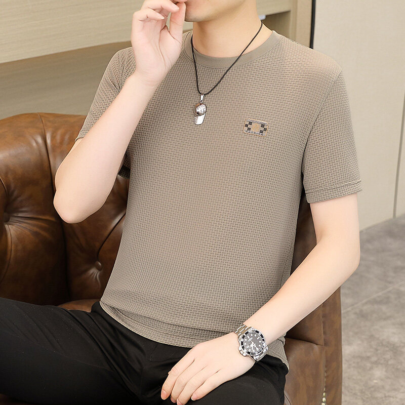 952-2025 夏新作 ラウンドネック半袖Tシャツ メンズ トレンド ファッション 通気性シャツ [4.8]