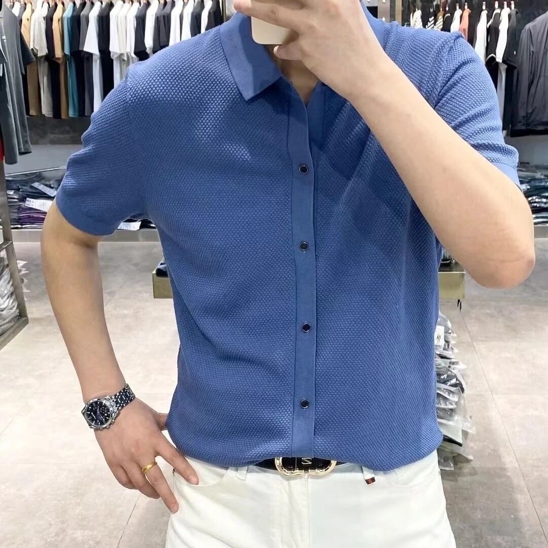 5201-2025夏の新型軽豪華半袖シャツ男性ビジネスカジュアル襟tシャツpoloシャツなし