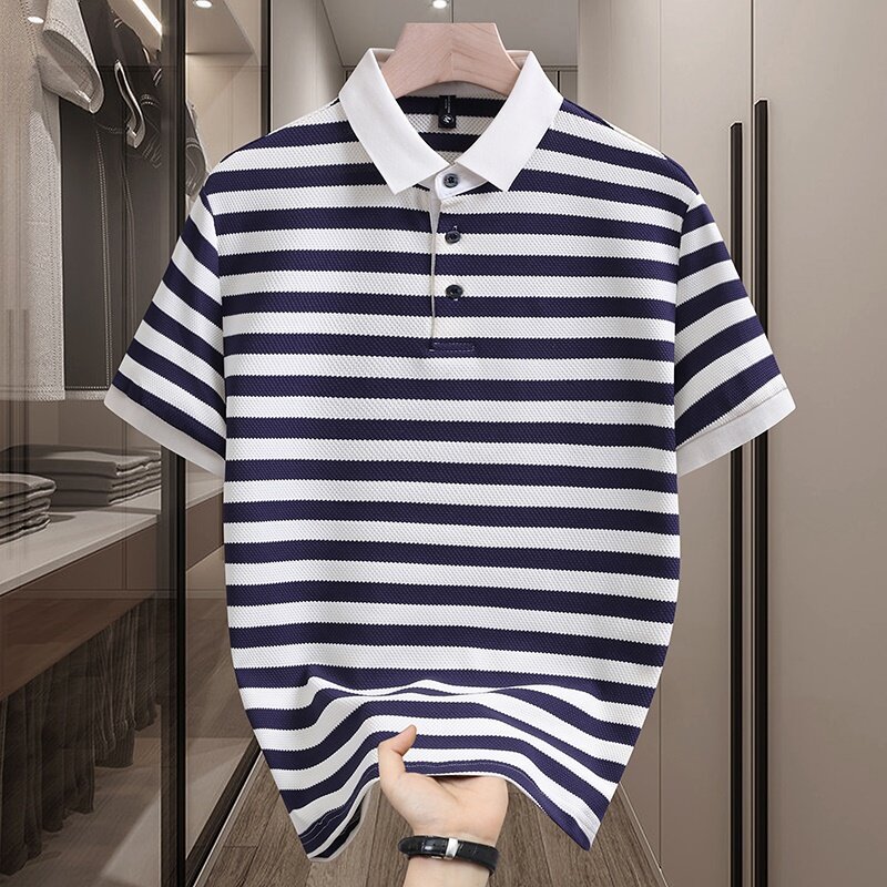 3556-2025 夏新作半袖ポロシャツメンズトレンディファッション通気性ラペルTシャツ[4.8]